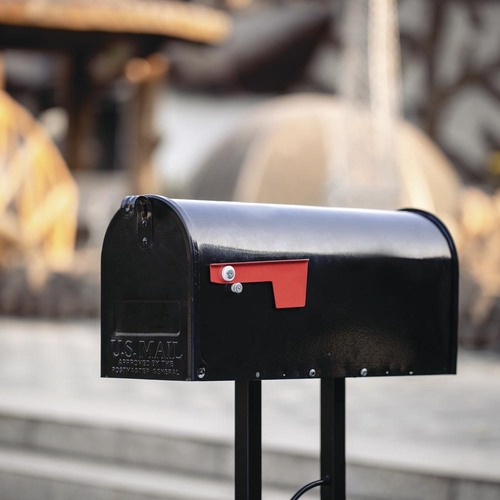 Our mailboxes are made of rust-resistant galvanized steel and sealed with a glossy black powder-coated finish to resist rust and elements.